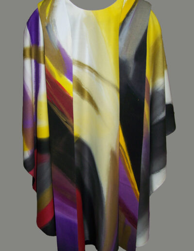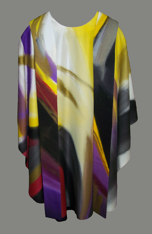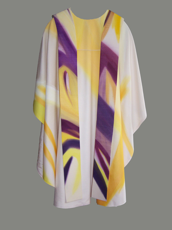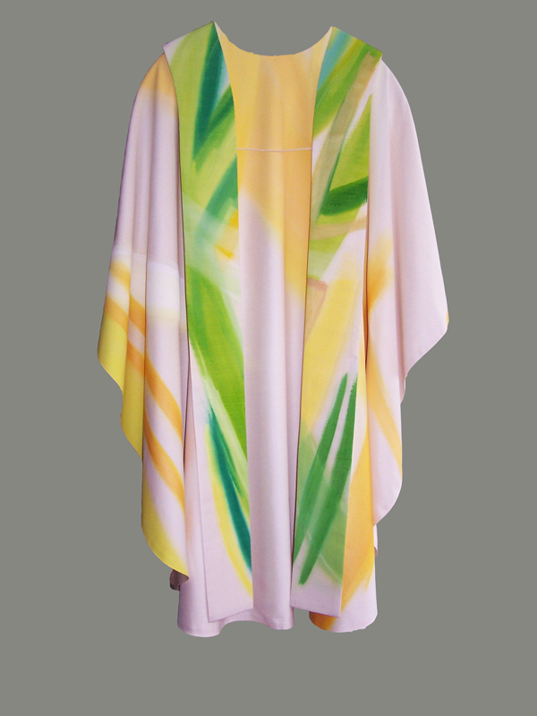 „…Im Messgewand lässt sich ein modernes Gemälde sehen, das aber nicht einfach an der Wand hängt und sich in den Grenzen eines Rahmens einbehält, sondern das auf den Schultern seines Trägers den Raum durchmisst, das in Bewegung ist und im Verlauf der liturgischen Handlung seine Wirklichkeit und Vielgestaltigkeit entfaltet.